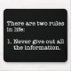 There are two rules in life: 1. Never give out all the information. Funny quote design is a great birthday or Christmas gift for someone who likes inspirational or motivational sayings about life and have a witty sense of humor. If you like satire or satirical humor, or sarcastic, snarky funny quotes about life, this design is perfect for you!