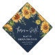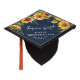 Customize this beautiful Graduation Cap Topper - Designed with a trendy navy blue background, decorated with autumnal yellow sunflowers and greenery. The white elegant calligraphy typography reads 'There is no Script...' add name, place of study and class year. Let's celebrate the Grad!