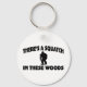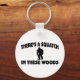 Infamous funny quote, “There’s A Squatch In These Woods,” using the shortened Bigfoot nickname, all in simple black lettering with a Sasquatch silhouette in between the phrase.