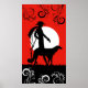 A stylish art deco fashion silhouette of woman and dog set against a bright white moon, with accents of stylized swirling branches and leaves in white and black. Available in twelve color combinations.