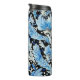 A stunning painting in the traditional Petrykivka style features delicate blue and sky-blue flowers blooming vibrantly against a deep black background. Each petal is meticulously detailed, showcasing intricate brushstrokes and ornamental patterns typical of this Ukrainian folk art. The floral design radiates elegance and harmony, with symmetrical arrangements and subtle gradients that highlight the artist's skill. The dark backdrop intensifies the colours, making the flowers appear almost luminous, while smaller ornamental elements like leaves and tendrils add a sense of movement and life to the composition.