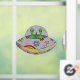 In this fun sci-fi illustration by Richard H. Fay, groovy green aliens ride in a flying saucer UFO decorated with flowers, hearts, a star, and a rainbow.