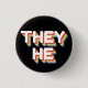 They/He Pronouns Rainbow 3D Retro 1 Inch Round Button