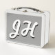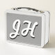 Thin Black & White Stripes | Retro-Styled Initials Metal Lunch Box