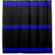 Thin Blue Line Shower Curtain. The Thin Blue Line is a symbol used by law enforcement, originating in the United Kingdom but now prevalent in the United States and Canada to commemorate fallen law enforcement officers and to symbolize the relationship of law enforcement in the community as the protectors of civilians from criminal elements. It is an analogy to the term Thin Red Line. Each stripe on the emblem represents certain respective figures: the blue centre line represents law enforcement, the top black stripe represents the public whilst the bottom represents the criminals. The idea behind the graphic is that law enforcement (the blue line) is what stands between the violence and victimization by criminals of the would-be victims of crime.
