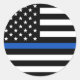 Thin Blue Line Police Sticker - American flag in Police Flag colours.This thin blue line sticker is a perfect for envelopes, letterhead, thank you, decorations for retirement or graduation parties, and giveaways at events or to kids at school programs from a visiting police officer. For law enforcement officers, detective, sergeant, lieutenant, captains, and deputy, chief of police, first responders and front line workers and supporters. See our collection for police patches and personalized id patches. COPYRIGHT © 2020 Judy Burrows, Black Dog Art - All Rights Reserved. Thin Blue Line American Flag Classic Round Sticker