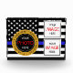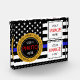 Glass Photo Block: Thin Blue Line & American Flag (USA) - enforcement / police themed - love my country, patriots / sports fans