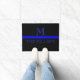 Customize and personalize the initial and family name on this elegant thin blue line door mat.