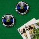 Our beautiful Thin Blue Line poker chips can be customized with or without the chip value. Using the customize tool you can also change the chip value to suit your level of card game play and/or the chip value colour, or you can remove the chip value entirely. All of our poker chips feature an exclusive, original art design not found anywhere else. Be sure to visit our custom playing cards too.