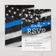 Cartes de réponse sur le thème de la police avec un drapeau américain et la ligne bleue fine, des guirlandes lumineuses et un modèle de réponse pour les forces de l'ordre facile à personnaliser.