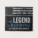 This design features a police force flag with black and white stripes, and a thin blue line stripe as well. "The Legend is Retiring" text sits above the customizable name of the retiring law enforcement officer, sheriff, captain, or chief. Celebrate this milestone in style!
