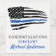 Congratulations! Add the finishing touch to your police promotion, retirement or graduation party with these thin blue line police congratulations wine labels and party supplies. USA American flag design in Police Flag colours, modern design. This congratulations police officer retirement collection will be a favourite. Personalize with officers rank and name. These police napkins are also perfect for police academy graduation party. See our thin blue line collection for matching police retirement invitations, police gifts, party favours, and supplies. COPYRIGHT © 2020 Judy Burrows, Black Dog Art - All Rights Reserved. Thin Blue Line Flag Police Retirement Party Wine Label