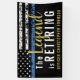 This design features a police force flag with black and white stripes, and a thin blue line stripe as well. "The Legend is Retiring" text in gold sits above the customizable name of the retiring law enforcement officer, sheriff, captain, or chief. Celebrate this milestone in style!