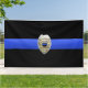 Greater love hath no man than he lay down his life for a friend. This is a fantastic 6x10 backdrop for any photo session, press release, public event or display. You can customize this design with your law enforcement department name or event name and you can even upload images to it to suit your needs. We have them in inside or outside models, with or without grommets. Get your Thin Blue Line banner today.