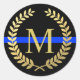 Thin Blue Line Monogram Faux Gold Wreath Police Classic Round Sticker