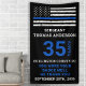 Perfect for all police officer retirement parties and law enforcement retirement keepsake. COPYRIGHT © 2020 Judy Burrows, Black Dog Art - All Rights Reserved. Thin Blue Line Police Officer Retirement Party Banner