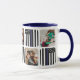 Blue thin line photo mug featuring American flags with photo frames for your own photos. Easily personalize this custom policeman photo coffee mug to create the perfect photo gift for any police officer.