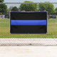 Our original design featuring the universal symbol of law enforcement, the Thin Blue Line, allows anyone to show their support for law enforcement in a very public way. Our outdoor flag banner has metal grommets for easy hoisting, hanging or flying from any conventional flagpole for any event from holidays to funerals. This is a great way to honour the men and women who protect and serve our communities. Be sure to have one on hand during National Police Week and for Peace Officers Memorial Day on May 15th of each year.