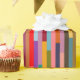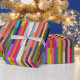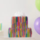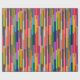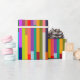 This wrapping paper has a geometric design of colourful stripes running vertically.
