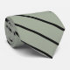 This quality striped tie is a must have every day accessory for men. The classic stripy design on a greenish grey background can be worn for work or special occasions. The black stripes on this tie are spaced evenly apart to give a classy overall effect that isn't too busy and is easy to wear. A nice tie for all ages and all occasions.