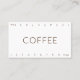 Coffee is a brewed beverage with a bitter flavour prepared from the roasted seeds of the coffee plant. The beans are found in coffee cherries, which grow on trees cultivated in over 70 countries, primarily in equatorial Latin America, Southeast Asia, South Asia and Africa. Green (unroasted) coffee is one of the most traded agricultural commodities in the world. Great for a casual coffee house or espresso drive-thru or even a cafe that serves lattes and mochas and cappuccinos. Change the numbers if you like to offer a free drink after fewer (or more) visits. Keep your customers coming back for more of your specialty, high-quality coffee drinks!