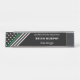 This elegant nameplate is the perfect choice for those in the military, border patrol, park rangers, and conservation officers. It features a thin green line flag design with stars and stripes in black and white at an angle on the left of the name plate. To the right is a name, workplace, and job title for you to personalize.