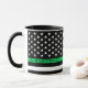 A unique police thin green line American flag custom name mug. The thin green line running across the center is representative of Border Patrol, Park Rangers, and Game Wardens.