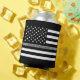 Show your support with this black and white thin grey line American flag can cooler. Personalize by replacing the sample name with your own name for a one of a kind gift for correctional officers. Great for days at the beach, picnics, and parties.
