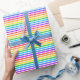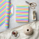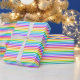 A wrapping paper designed with a striped pattern with bright rainbow colors and white in thin width.