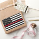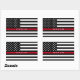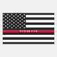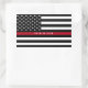 These stickers feature a thin red line American flag in honour of firefighters. Sample text has a name for you to personalize.