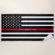 This thin red line beach towel features a black and white firefighter thin red line American flag along with a name for you to personalize.