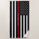 Thin Red Line Firefighter Flag Monogram Beach Towel
