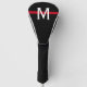 This golf head cover is in honour of firefighters featuring a horizontal red stripe on a black background and a monogram initial in white for you to personalize.