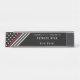 This elegant nameplate is the perfect choice for firefighters. It features a thin red line design stars and stripes at an angle on the left of the name plate. To the right is a name, workplace, and job title for you to personalize.