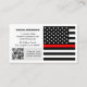 Business Cards: Modern Thin Red Line & American Flag (USA) firefighters / fire service personnel themed business card featuring flag of Firefighter Services on one side and your details together with scannable QR Code, small Thin Red Line flag on the other side. Easily customize link in QR Code for a website or mobile number, personalize name, address details or change flag on the side for local services logo, personal photo or any other image.