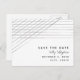 An elegant wedding save the date invitation featuring a think black striped pattern at top. Matching wedding invitations and other coordinating items can be found at Jill's Paperie.