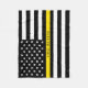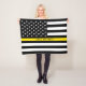 This small size blanket features a black and white dispatcher thin yellow line American flag along with a name for you to personalize. medium and large sizes also available in our collection.
