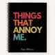 Things that annoy me notebook. Personalized simple notebook where you can add your name. Best gift for him or her.