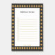Elegant Things to do lined Post-it notes and golden text "Time is Gold" framed with gold polka dots on black background. All texts can be personalized!