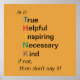 Is it: Treu, Helpful, Inspiring, Necessary, Kind - if not, then don't say it!