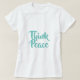 Women's white T-Shirt with teal "Think Peace" text on front. The power of positivity in a T-shirt.