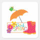 Think Spring Galoshes Flowers Umbrella Square Sticker