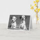 This fun Thinking of your Greeting card features a black and white image of two spotted Dalmatian Puppy Dogs sitting in a wicker basket.