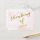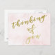 NewParkLane - Elegant Postcard, with 'Thinking of you' in elegant faux gold foil script typography, against a blush pink watercolor background.