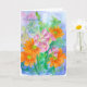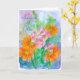 A bright and pretty greeting card decorated with vermilion orange daisy flowers and soft pink snapdragons painted in watercolor. You can change the wording to fit your needs.
