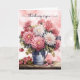 A watering can holds a botanical bouquet on bold mum blooms in shades of pink and white on this card to simply let someone know you are thinking of them.