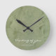 Thinking Of You Sage Wall Clock. Luxurious Sage Venetian Plaster background with your choice of text style and content. Can be customized with your friend or clients name.