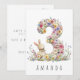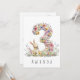 Make a little one's 3rd birthday extra special with this charming card, featuring a delicate watercolor illustration of the number 3, beautifully crafted from tiny, colourful pastel flowers. A cute bunny stands beside the number, playfully nibbling on the blossoms, adding a touch of sweetness and joy to the design. Whether you're a parent, grandparent, or family friend, this enchanting card is sure to bring a smile to both the little one and their loved ones.