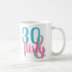Hello Thirty! Celebrate your fabulous 30th birthday with style! This thirty and flirty mug has pink and blue text.