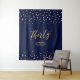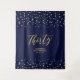 This modern tapestry is perfect for a chic black and gold colour theme birthday party. Your guests will enjoy taking a photo with this sophisticated party backdrop and remember your special day. The design features golden typography " Thirty " and hexagon confetti on a navy blue background. You can personalize the name, event, and date at the bottom of the tapestry. More invitations and party supplies are available at my shop BaraBomDesign. Thank you!